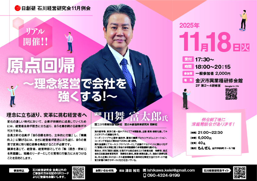 石川経営研究会 2025年度11月例会のお知らせ