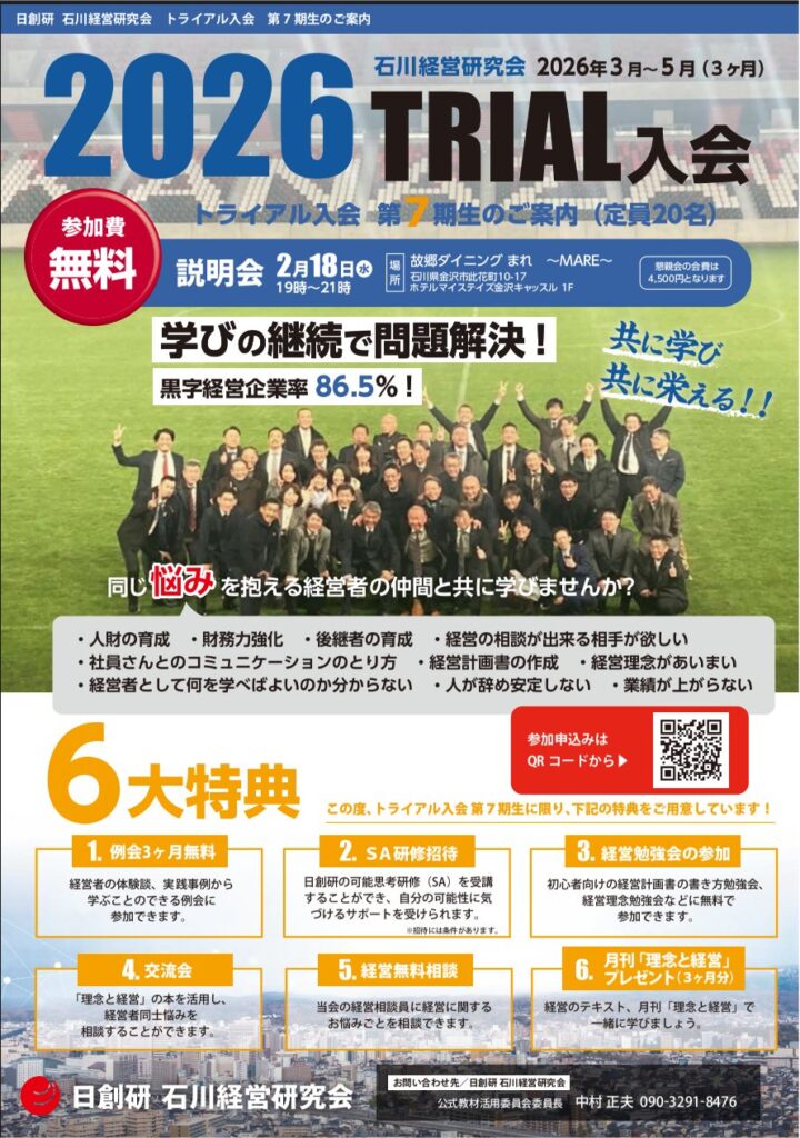 石川経営研究会 2026年度第7期トライアル説明会のお知らせ