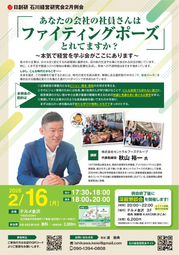 石川経営研究会 2026年度2月例会のお知らせ